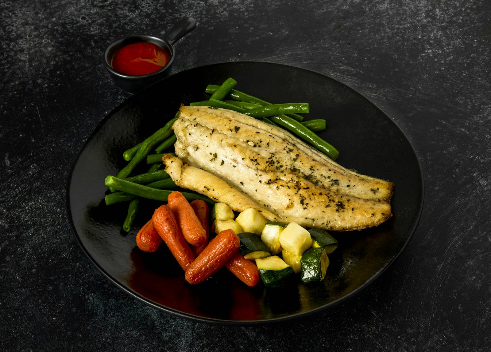 The sauce was overpowering so I didn’t use it making the fish bland. I liked the texture of the green beans and carrots except they were too salty. The meal came with half the veggies pictured.