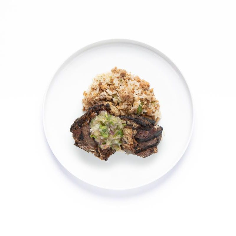Chef Angelia pulls influence from around the globe for this boldly flavored dish. Super tender lamb loin chop is seasoned with classic Creole spices, then grilled to perfection to get that perfect spice crust. On the side, enjoy a satisfying side of traditional Cajun-style dirty rice, infused with a medley of spices and herbs, plus smoky bacon and rich ground pork. Topped with a tangy pineapple chutney, this dish strikes the perfect balance of sweet and salty flavors to keep you coming back for bite after bite.