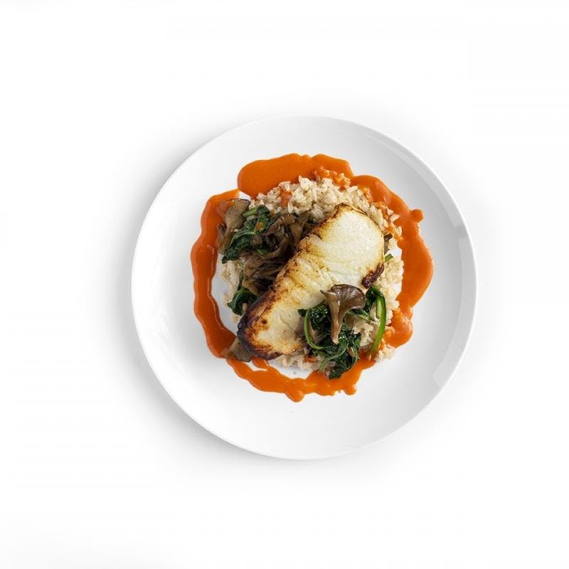 Chef Chase serves up a delectable Japanese-inspired dish of cod that's been marinated in a sweet and savory miso blend then broiled to perfection. The delicate fish is served with nutty brown rice, meaty shiitake mushrooms, wilted baby spinach, and a mouthwatering carrot-ginger sauce that you'll want to put on everything. Every bite promises a delightful blend of flavors and textures.
