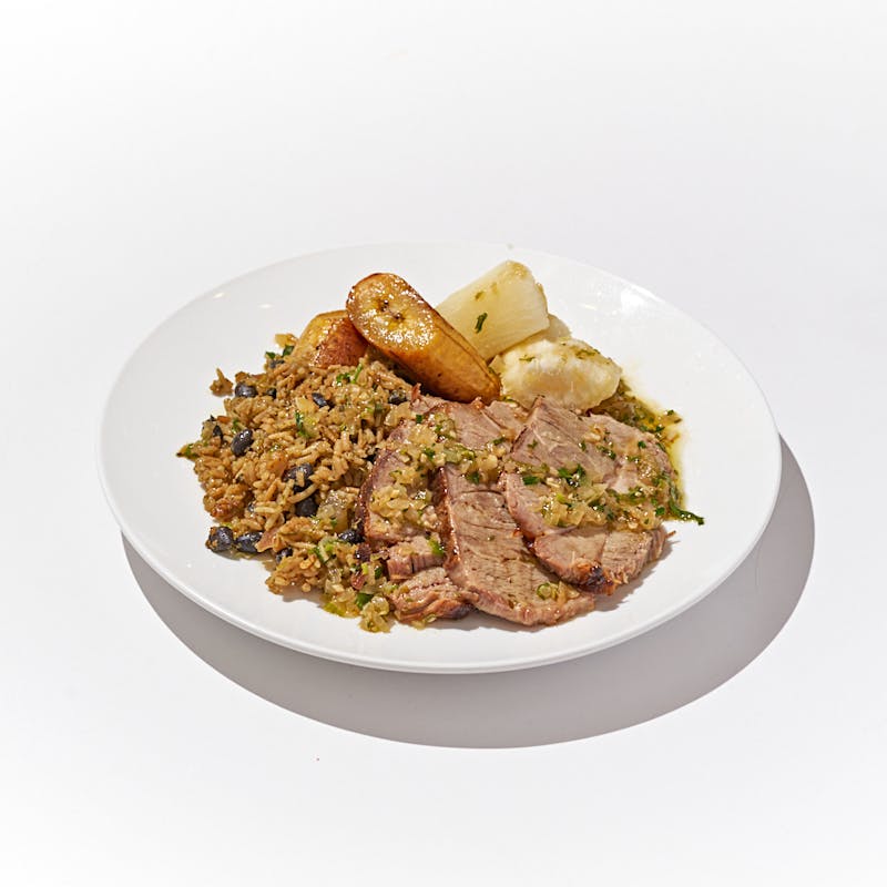 Canola Oil, Canola and Olive Oil Blend, Bay Leaf, Extra Virgin Olive Oil, Canned Black Beans, Oregano, Plantain, Vegetable Base, Cumin, Cilantro, Garlic, Achiote Paste, Agave Syrup, Onion, Basmati Rice, Kosher Salt, Shallot, Chipotle in Adobo, Lime Juice, Yucca, Green Onion, Orange Juice, Red Bell Pepper, Italian Parsley, Pork Shoulder