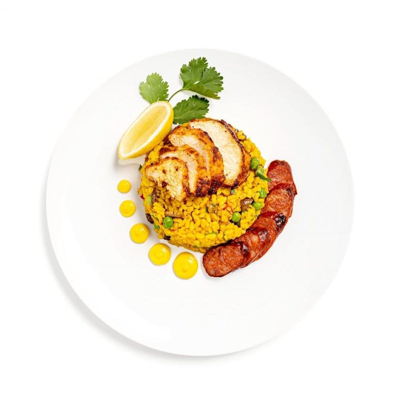 Chef Jose has been cooking paellas for most of his career, starting way back when he learned his technique from some of the best chefs in Spain. This particular dish combines all those years of practice and techniques, along with traditional flavor combinations. Tender adobo-spiced chicken, sliced Bilbao chorizo, sweet piquillo peppers, olives, peas, and rice infused with saffron and spices. A drizzle of savory saffron aioli on top completes the dish; now prepare to be transported to a high-end Spanish restaurant in minutes!