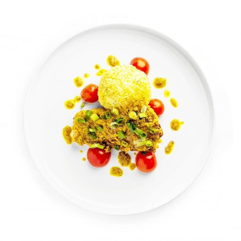 Cod, Jasmine Rice, Spice Blend, Cherry Tomato, Coconut Milk, Spice Blend, Chicken Base, Sunflower Oil, Green Onion, Vegetable Base, Kosher Salt, Lemongrass, Turmeric, Kaffir Lime
