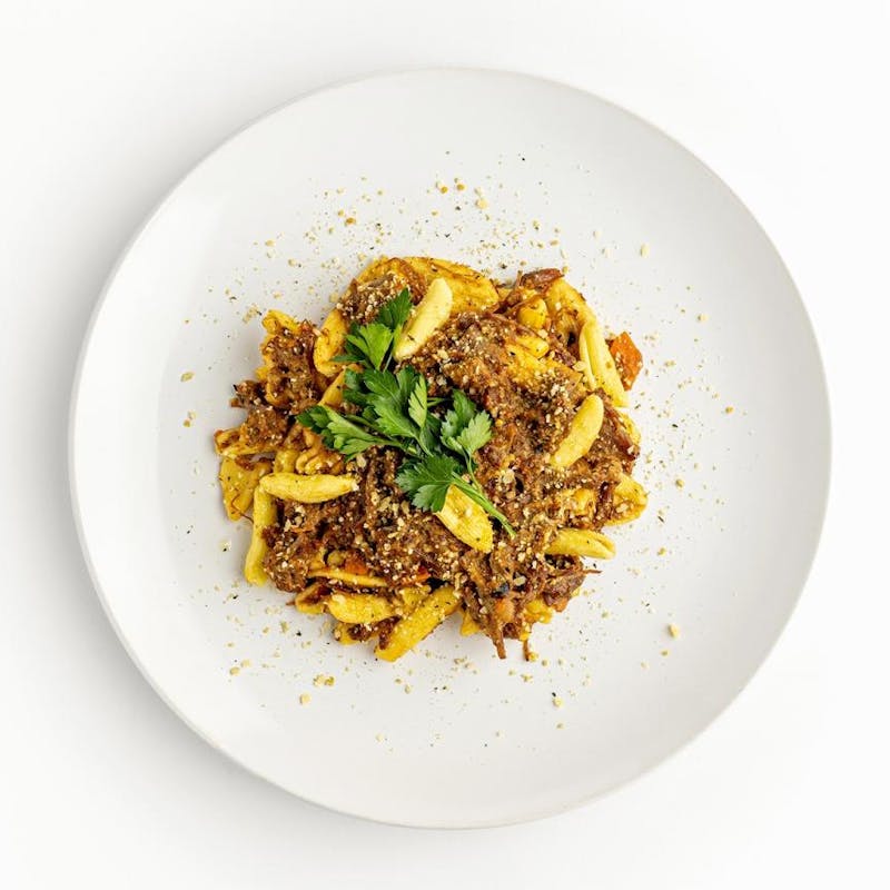 Ricotta Cavatelli Pasta, Lamb, Tomato Puree, Carrots, Mascarpone Cheese, Veg, Tomatoes, Whole, Canned, Italian, Onion, Panko Breadcrumbs, Extra Virgin Olive Oil, Kosher Salt, Italian Parsley, Vadouvan, Basil, Garlic, Mint, Chicken Base, Garlic Powder, Thyme, Black Pepper, Sugar, Crushed Red Pepper