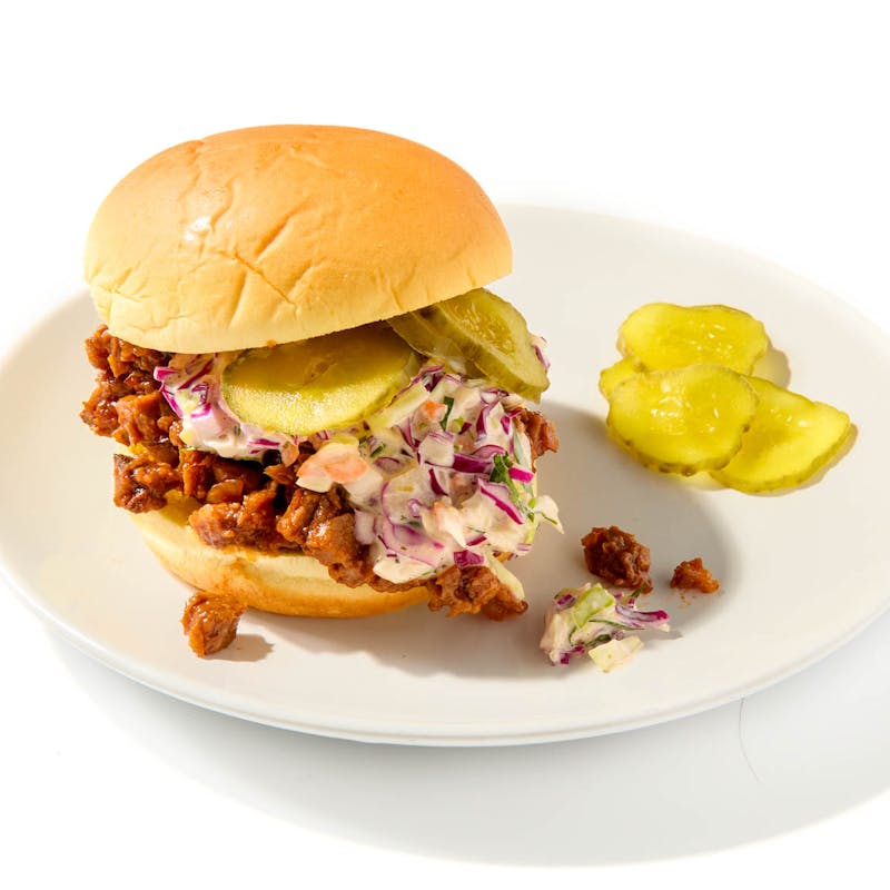 Everyone loves low and slow smoked BBQ brisket. It is a classic BBQ combo right on time for the summer but beloved year-round. Chef Chris' version is pitch perfect, chopped, piled high on a potato bun, and topped with bread and butter pickles. Paired with Chef's creamy homestyle coleslaw, this dish is a little taste of Southern comfort.